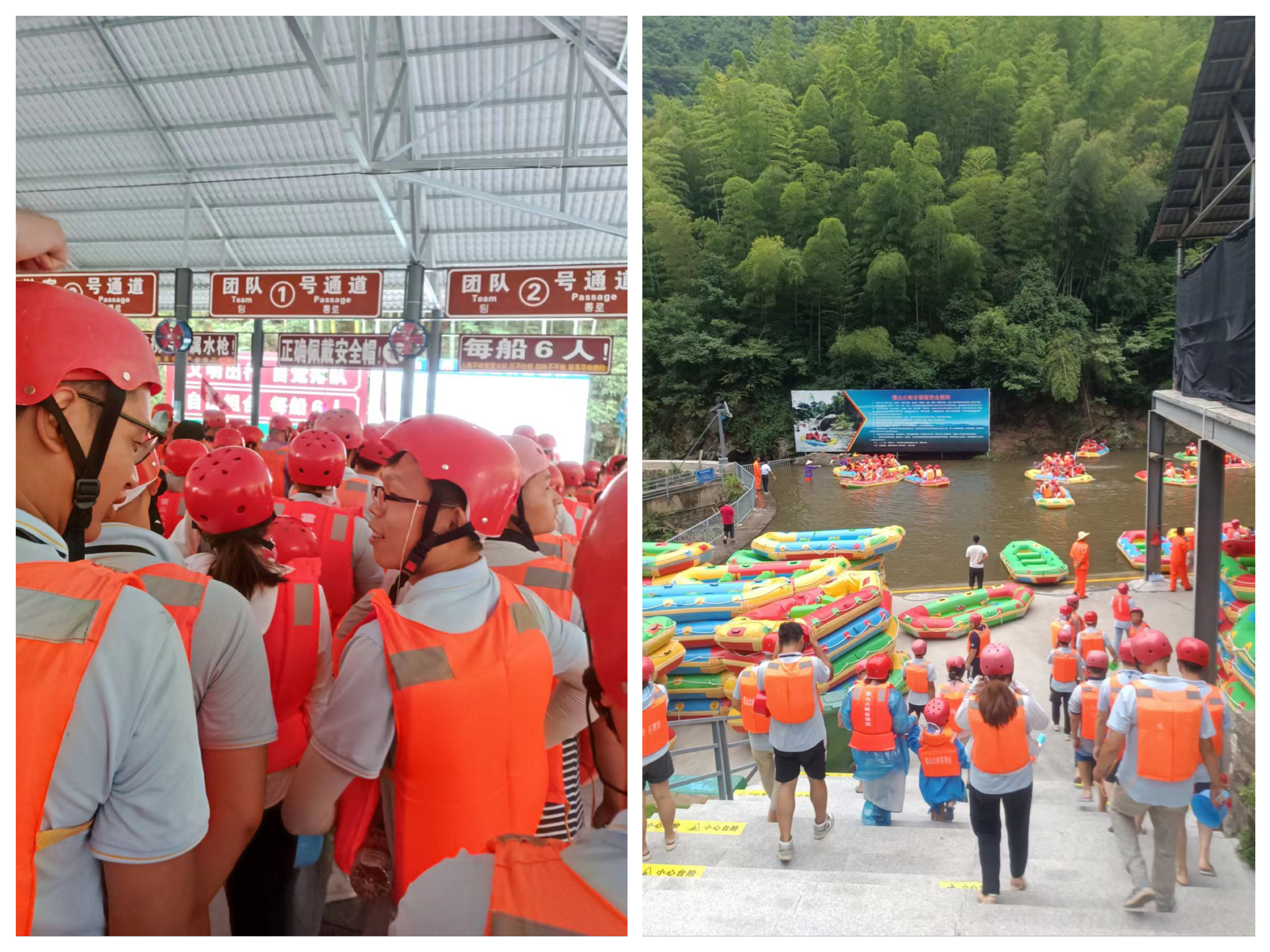7月23日,主题为"凝心聚力扬帆起航,激情漂流共同前进"的漂流团建活动在霍山大峡谷举行。今年会环卫事业部的员工们统一着装,戴好安全帽,穿上救生衣全副武装,做好漂流安全准备工作。