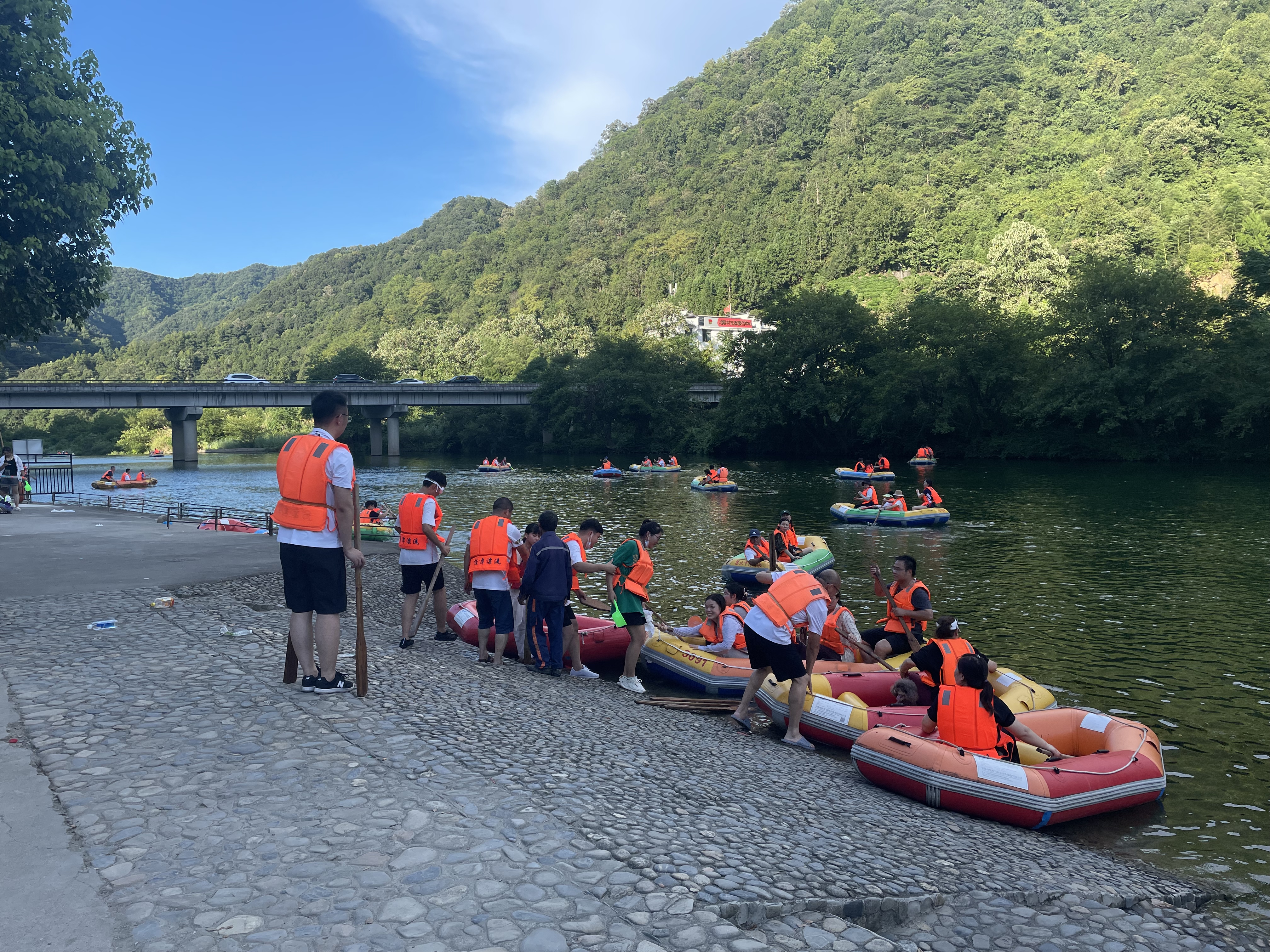 下午3点,团队来到此次行程的第二站-怪潭峡谷冲浪漂流,怪潭漂流全程约4公里,有冲浪滑道两处,激流险滩五道,水绕山转,山贯水行。虽然炎炎夏日,但在这期间,大家不仅进行一场与水的亲密接触,解暑清爽,也欣赏了秋浦河两岸如画的风光。